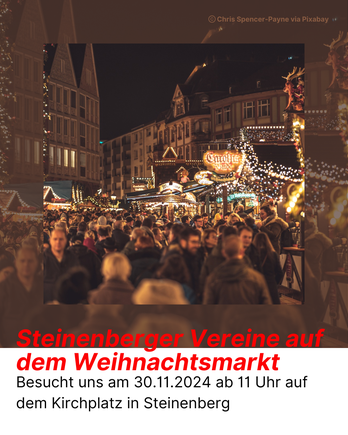 Am 30.11.2024 ist es so weit: Gemeinsam sind der Schwäbische Albverein, der Liederkranz, der Frauencampus und die Sportfreunde für euch auf dem Weihnachtsmarkt der Steinenberger Märktle zu gegen! Zwischen 11 und 17 Uhr erwartet euch an unserem Stand: